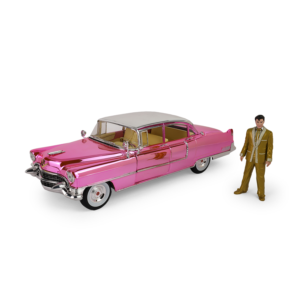 Elvis Presley (1935-77) - 1955 Cadillac Fleetwood Series 60 "Pink Cadillac" Chrome Edition with Elvis Gold Suit Figure